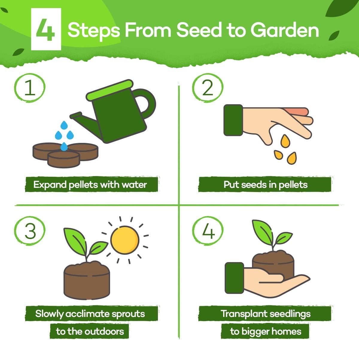 Easy to Transplant – After sprouting and standard hardening procedures, transfer your sprouts to potting soil or your garden. Bury your pellet in enough soil to cover it, gently pack it in, and water.