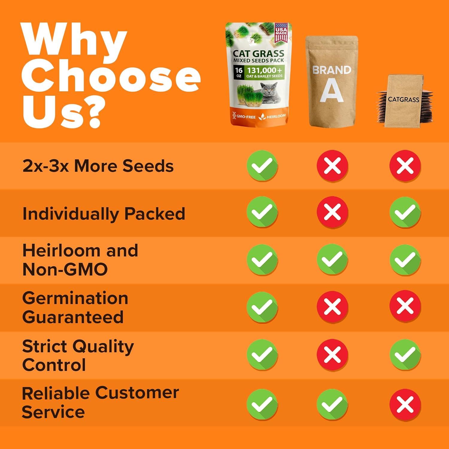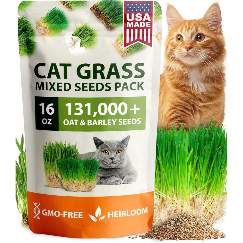 HOME GROWN 𝗨𝗦𝗔 𝗣𝗥𝗘𝗠𝗜𝗨𝗠 1 Pound Cat Grass Seeds for Cat & Kittens Oat & Barley Mix 100% 𝗡𝗢𝗡-𝗚𝗠𝗢 Heirloom, Grow Fresh Kitty Grass for Chewing, Pet Grass for Cats Indoor Garden(6 oz)