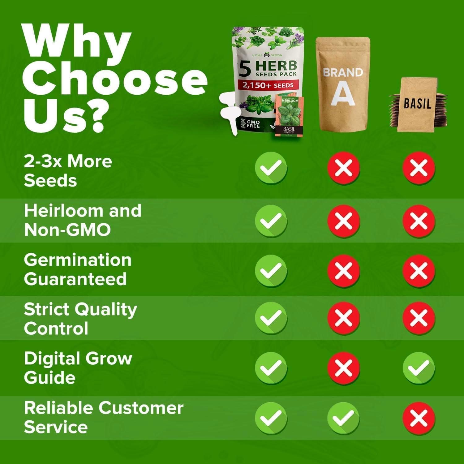 HOME GROWN 10 Herb Seeds for Planting 3,000+ Non-GMO Heirloom Seeds | Extra Large Variety Pack Herb Kit – Indoor Outdoor & Hydroponic | Culinary Seed Set | Grow Your Own Herbs | Gift for Beginners(5-Pack)