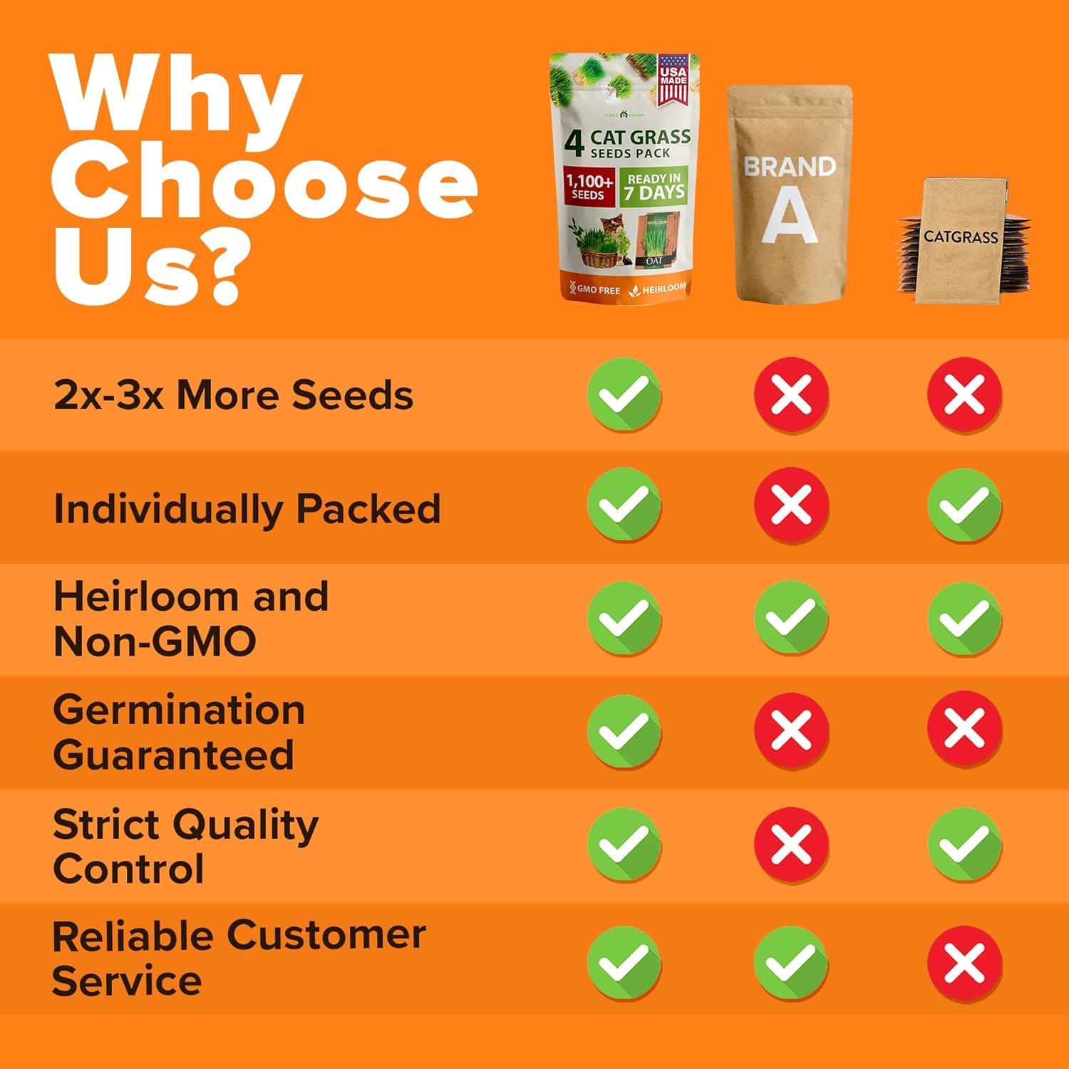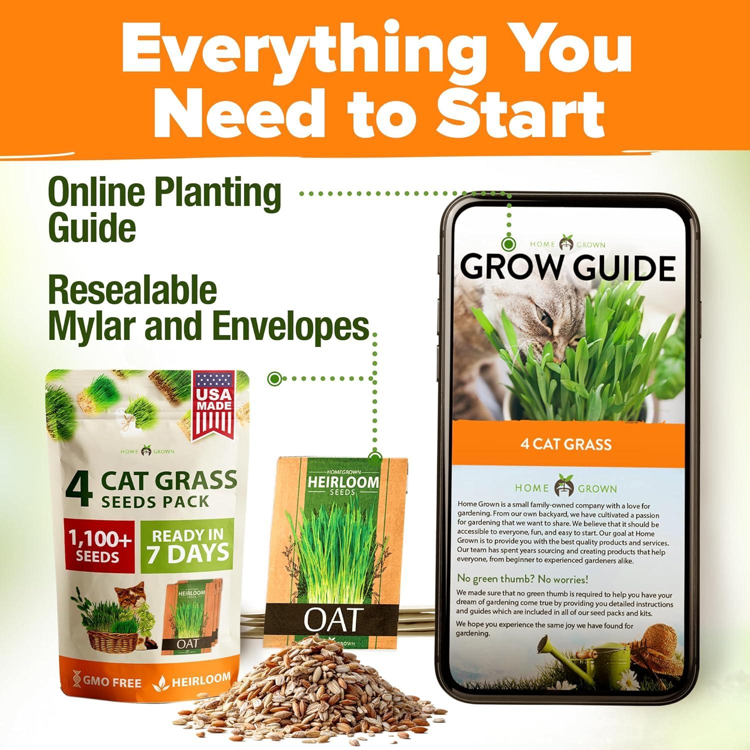 Home Grown 3200+ Indoor Cat Grass Refill – Non-GMO USA Grown Catnip, Oat & Alfalfa Seeds – Cat Grass Kit Replacement – Fast-Growing Pet Grasses for Cats’ Digestion & Hairball Relief(Cat Grass – 4pack)