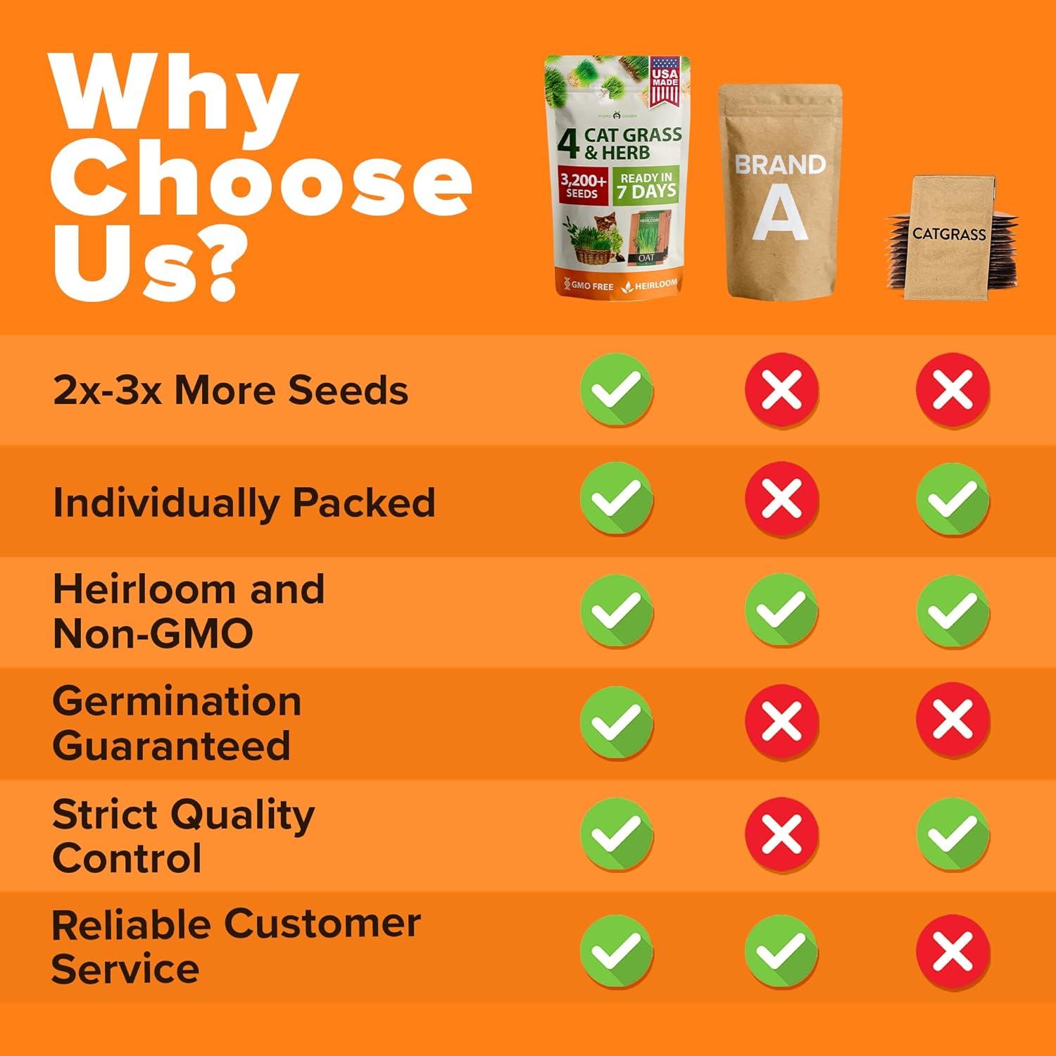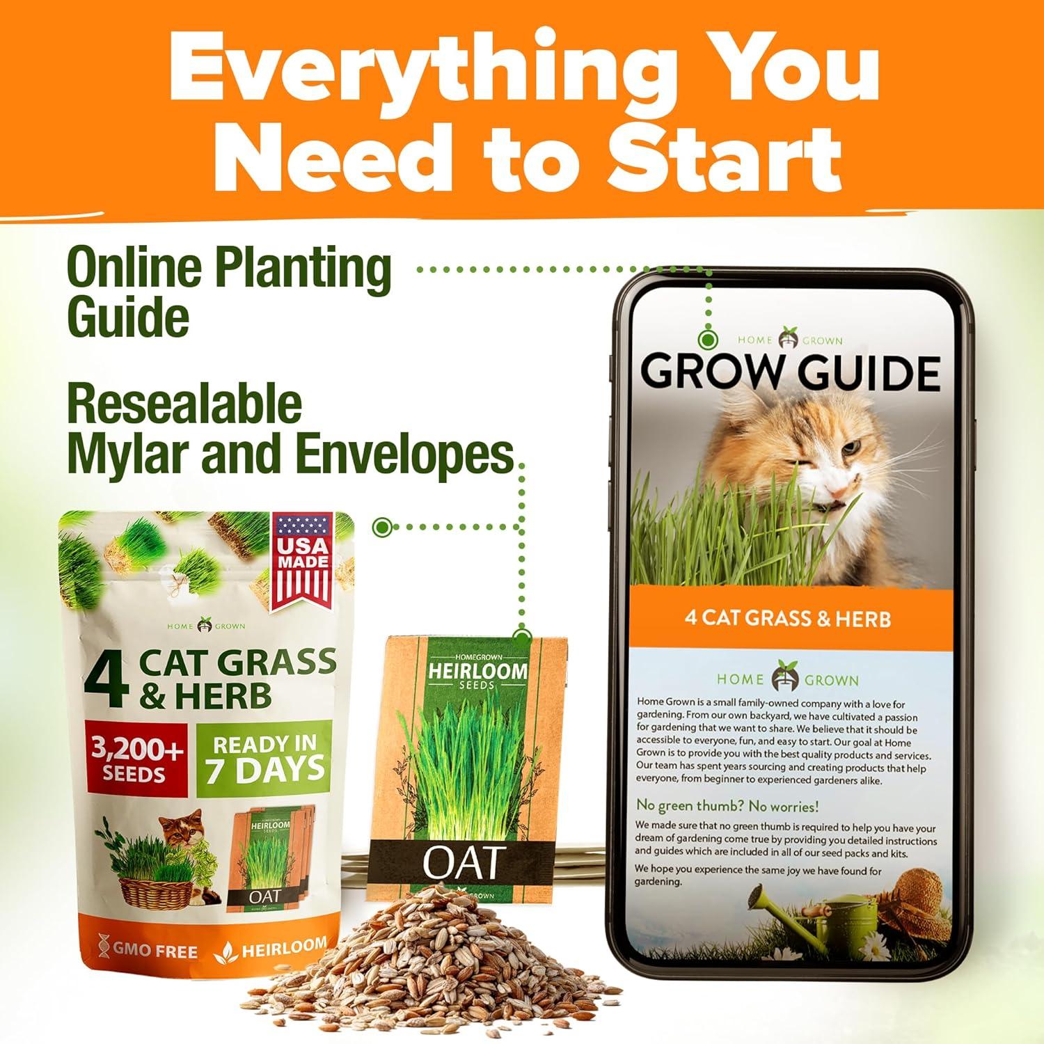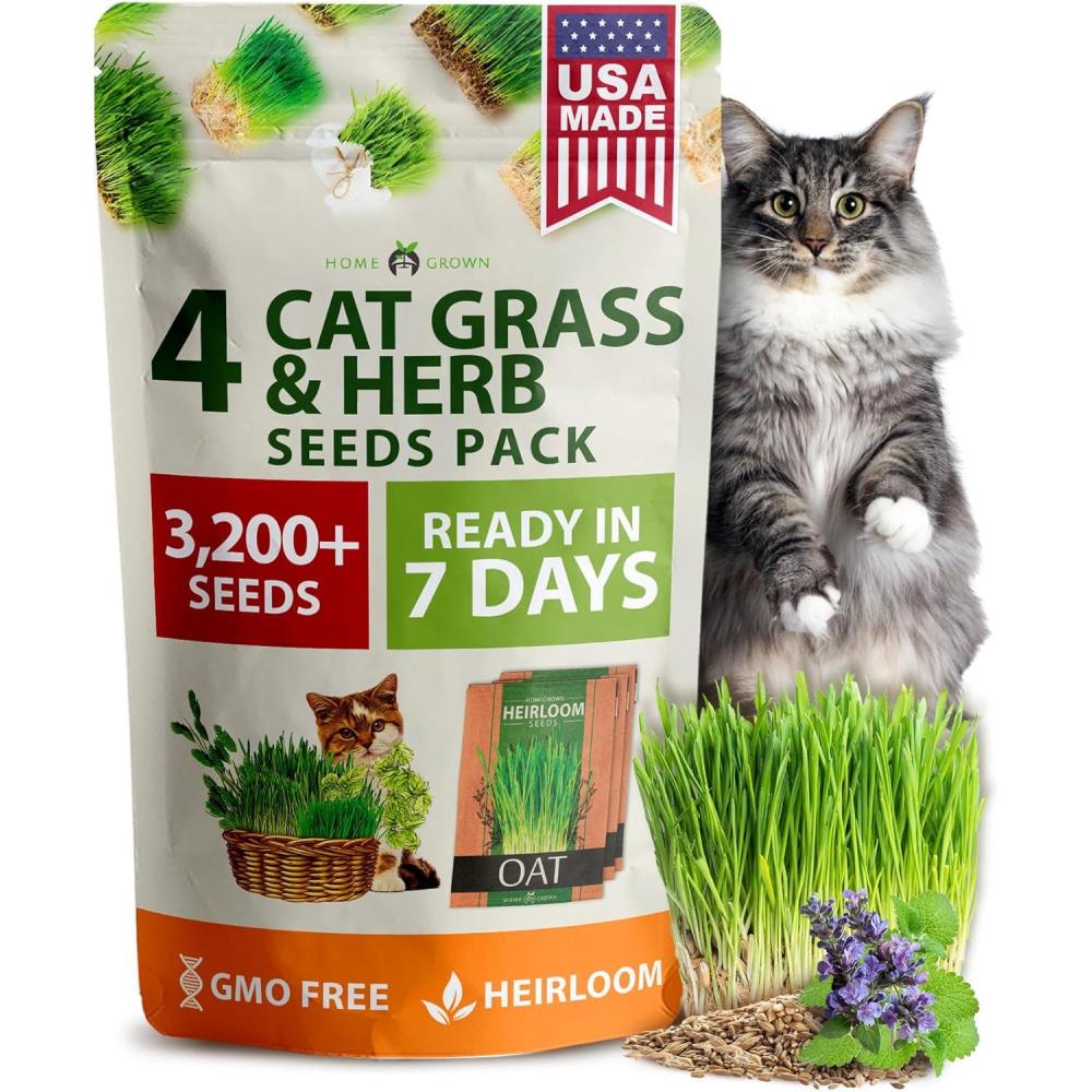 Home Grown 3200+ Indoor Cat Grass Refill – Non-GMO USA Grown Catnip, Oat & Alfalfa Seeds – Cat Grass Kit Replacement – Fast-Growing Pet Grasses for Cats’ Digestion & Hairball Relief(Cat Grass – 4pack)