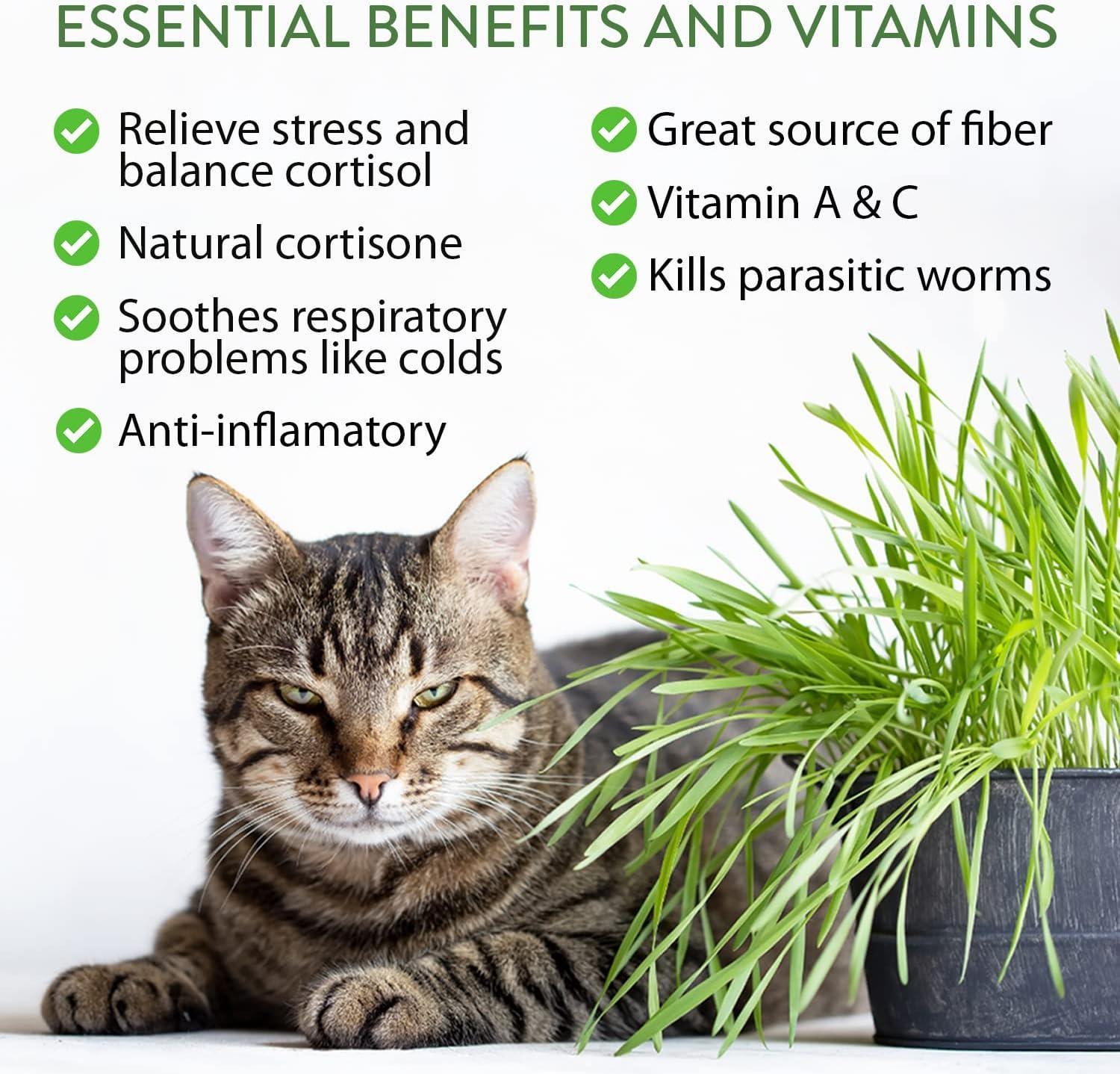Premium Seeds Just for Your Cats – These greens are great for digestion, preventing hairballs and are chockfull of amino acids and fiber, and also keep your cats away from chewing house plants (which may not be safe).