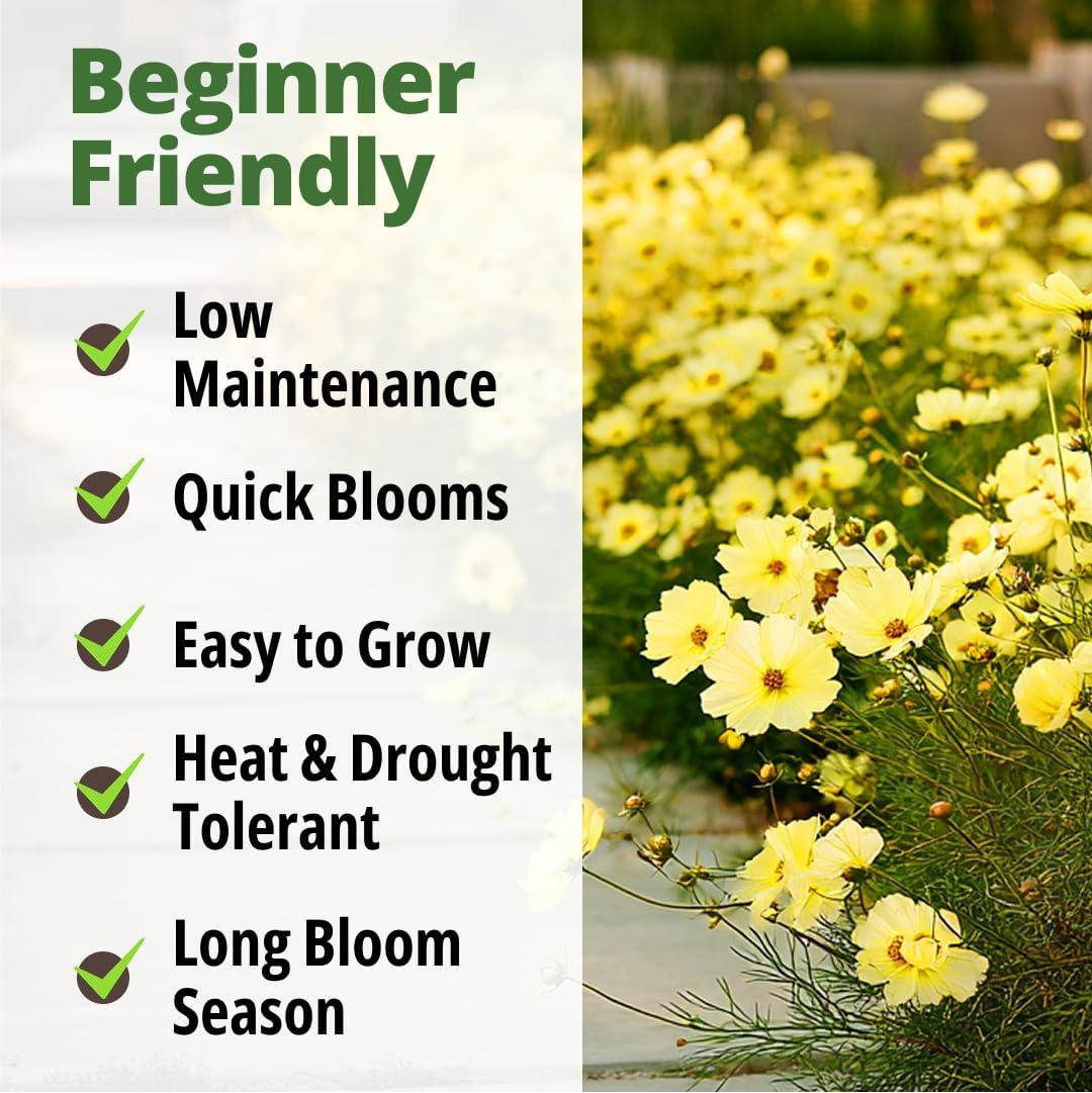 HOME GROWN Bachelor Button Flower Seeds Tall Mix 700+ Cornflower Heirloom Seeds for Planting – Quick Blooming, Non-GMO, Pollinator Friendly, Easy to Grow Wildflowers USA Grown (Centaurea cyanus)(Cosmos Dwarf Lemon)