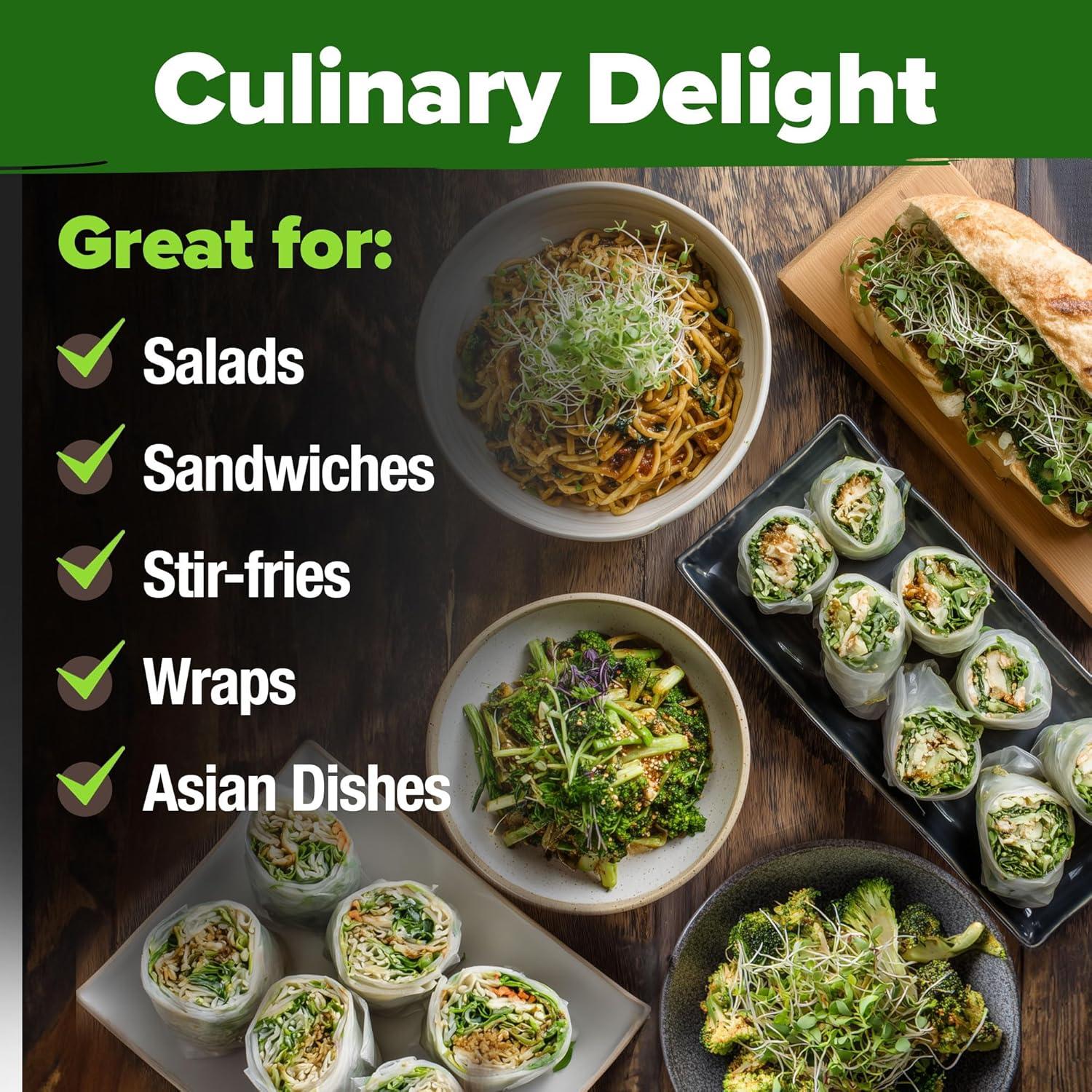 Premium Quality: High germination organic broccoli sprout seeds; USA-sourced for guaranteed freshness; Non-GMO sprouting seeds that deliver consistent results; Ideal for both beginners and experienced growers