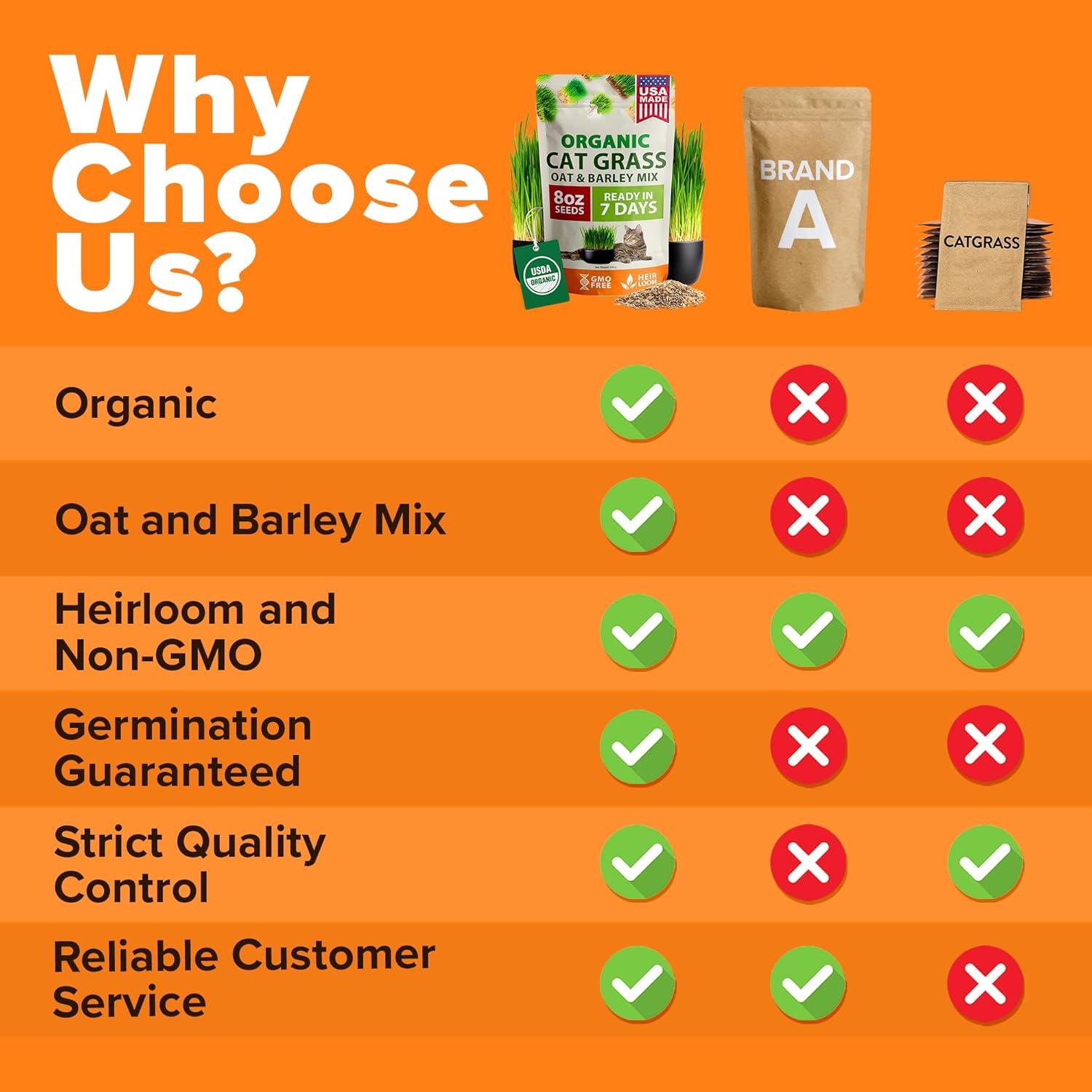 PREMIUM QUALITY USA-SOURCED ORGANIC SEEDS – Our non-GMO, heirloom seeds are sourced in the USA, ensuring top-tier quality for your pet. These organic cat grass seeds include a mix of oat and barley grasses for variety and health benefits.