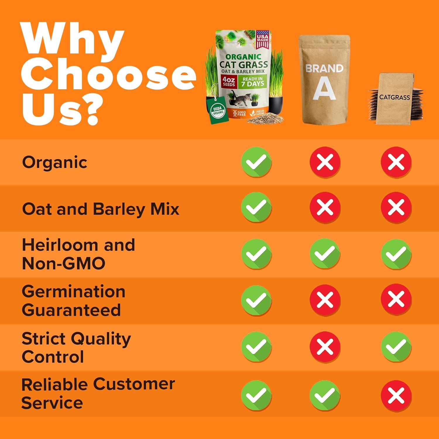 PREMIUM QUALITY USA-SOURCED ORGANIC SEEDS – Our non-GMO, heirloom seeds are sourced in the USA, ensuring top-tier quality for your pet. These organic cat grass seeds include a mix of oat and barley grasses for variety and health benefits.