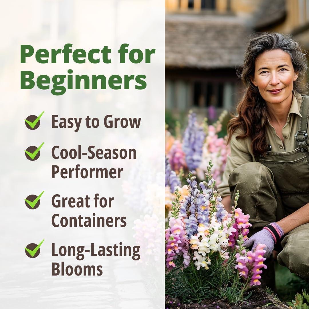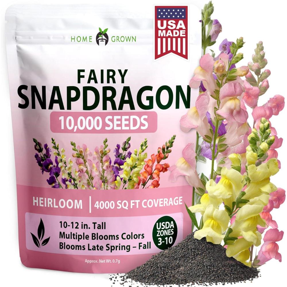 FAIRY SNAPDRAGON – FIREWORKS OF MINIATURE DRAGONS. BOLD ELEGANCE. Flawless, untreated, non-GMO seeds from an American brand. Certified for variety purity, freshness, vitality, germination, and adaptation. Micro-seeds – macro-effect. Comfort zone 3-10.